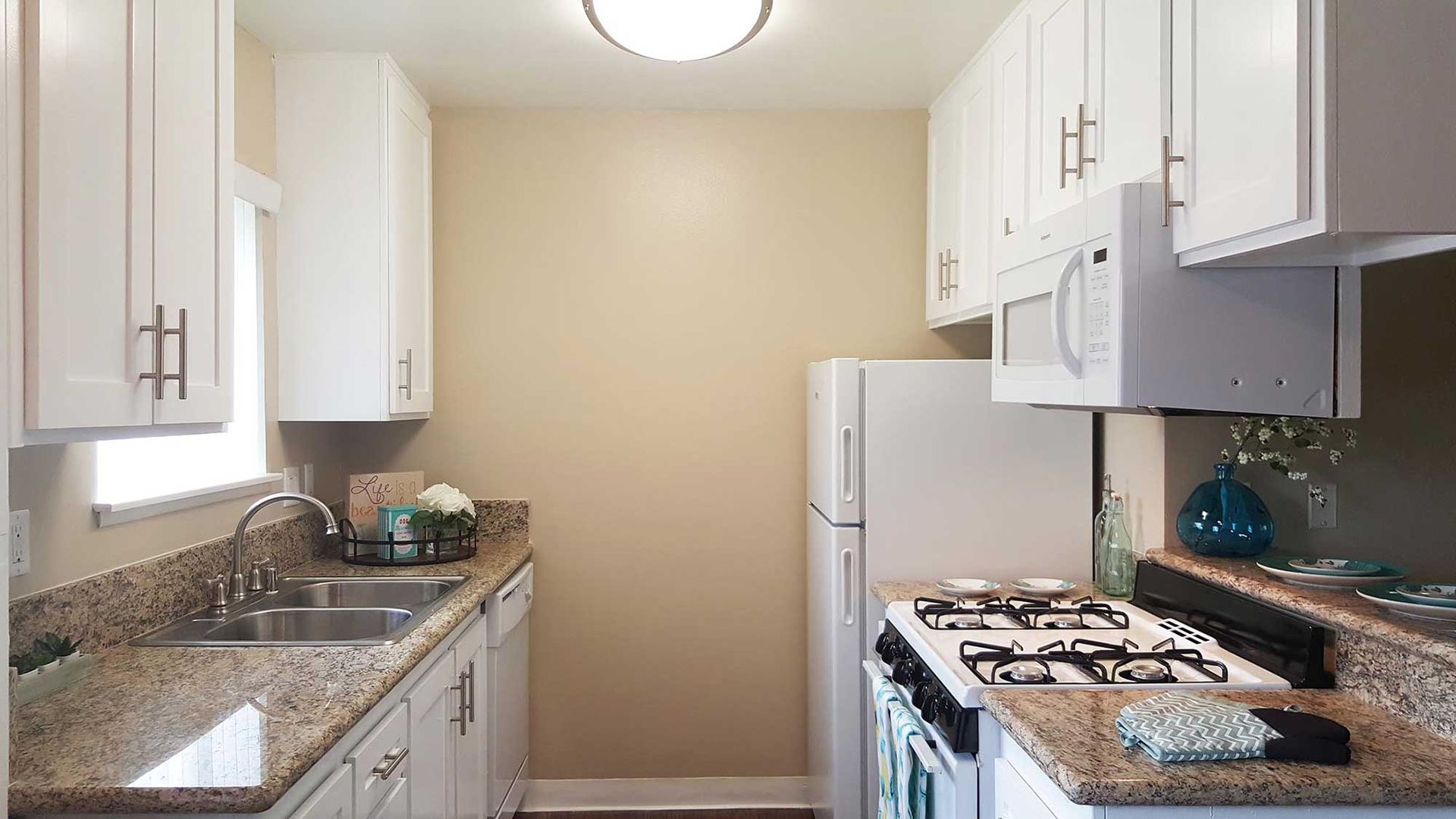 - Full white appliance package (refrigerator, gas stove/oven, dishwasher and built-in microwave)