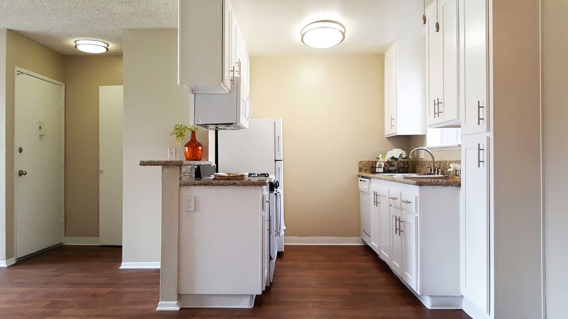 Our thoughtfully crafted one and two-bedroom apartments feature a harmonious blend of modern style and everyday comfort, complete with granite countertops, wood-inspired flooring, and a full appliance package.